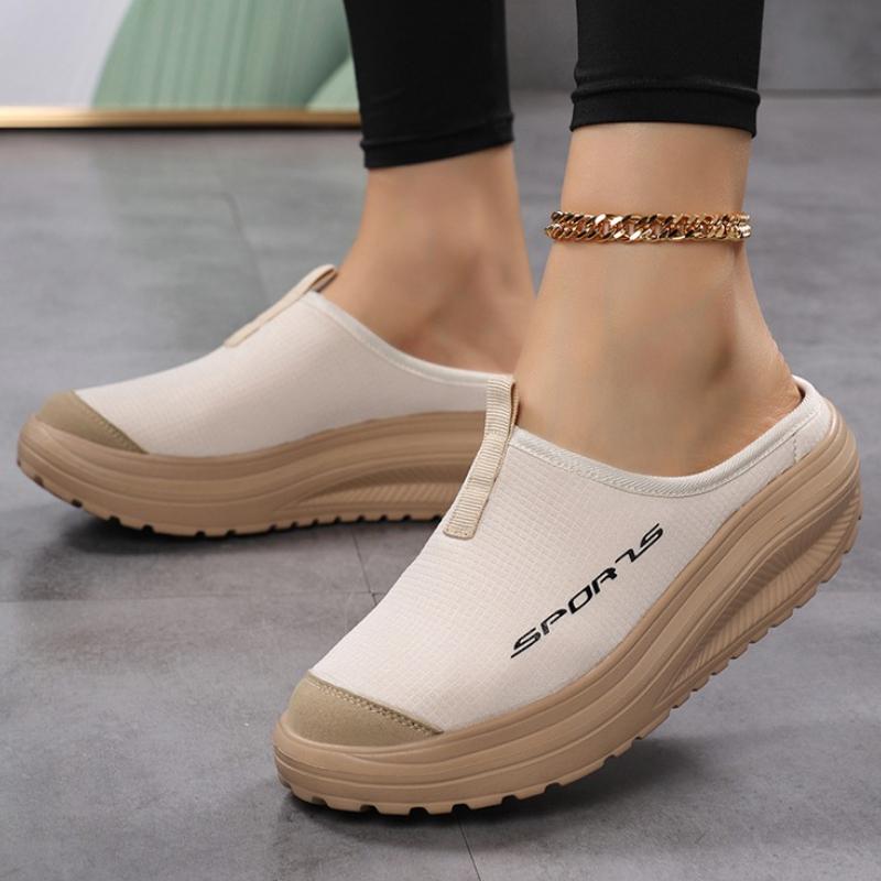 Round Toe Half Slippers Women Light Flat Shoes Anti-slip Daily Walking Shoes Slip-on Fashion Platform Shoes