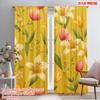 2pcs,2D plane printing Curtain Fabric Sunny Blooms Durable 100% Polyester Fabric (without rod) Holiday Use for Home & Office