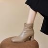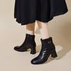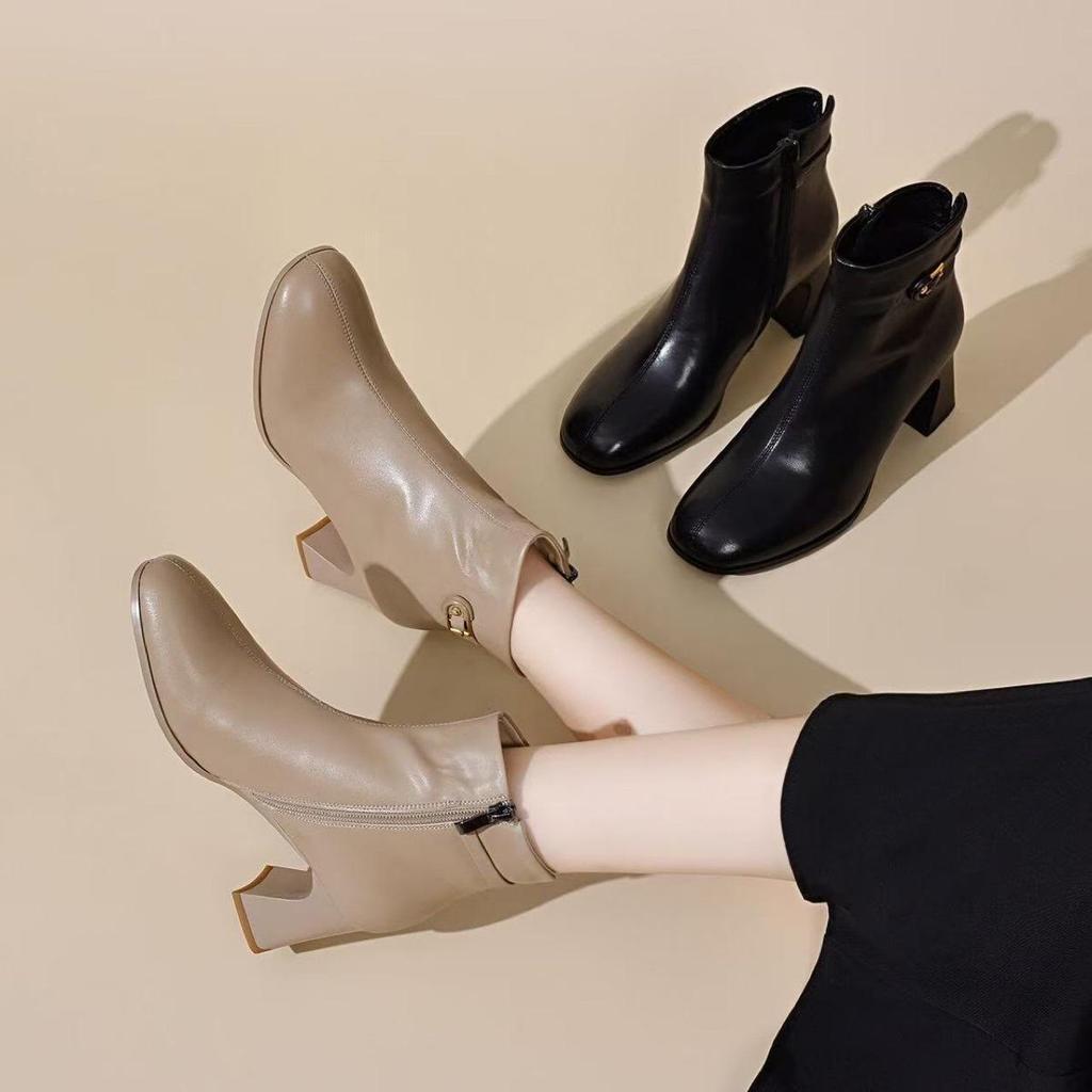Balerini din piele naturală pentru femei - Piele de oaie, Vârf pătrat, Toc gros, Căptușiți cu pluș pentru iarnă, Piele moale pentru primăvară/toamnă.