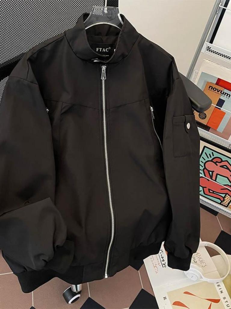 Spring and Autumn Stand-up Collar Zipper Jacket Men's Windproof Casual Trend Brand Sports Teen Ruffian Handsome American Student Trend Jacket