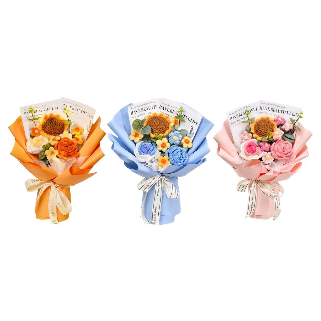 Flori Tricotate Completate Decor Acasă Buchet de Flori Croșetate pentru Ziua Îndrăgostiților Nuntă Ziua Profesorului Ziua Recunoștinței Bunica