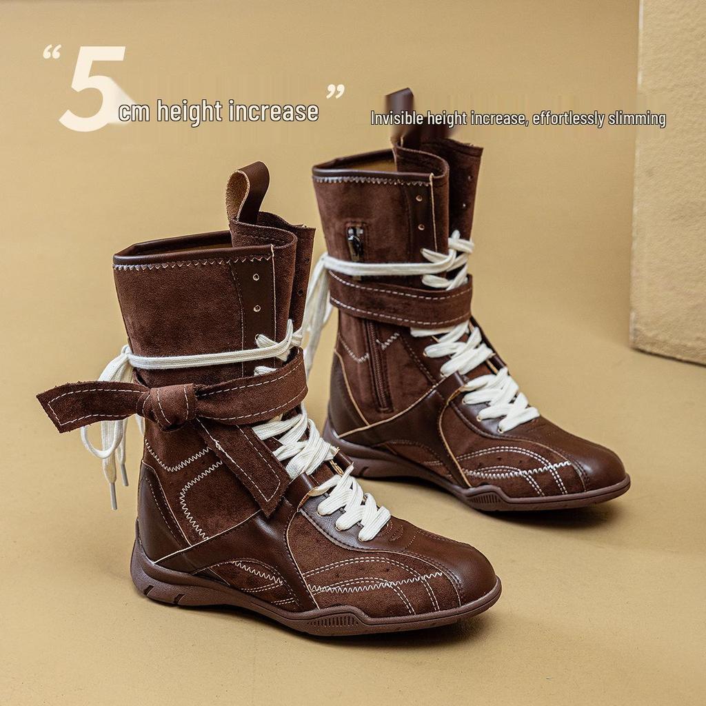 Women's Retro Martin Mid-Calf Leather Boots - Small Size, Brown, Thick Sole, Fall 2025 Edition