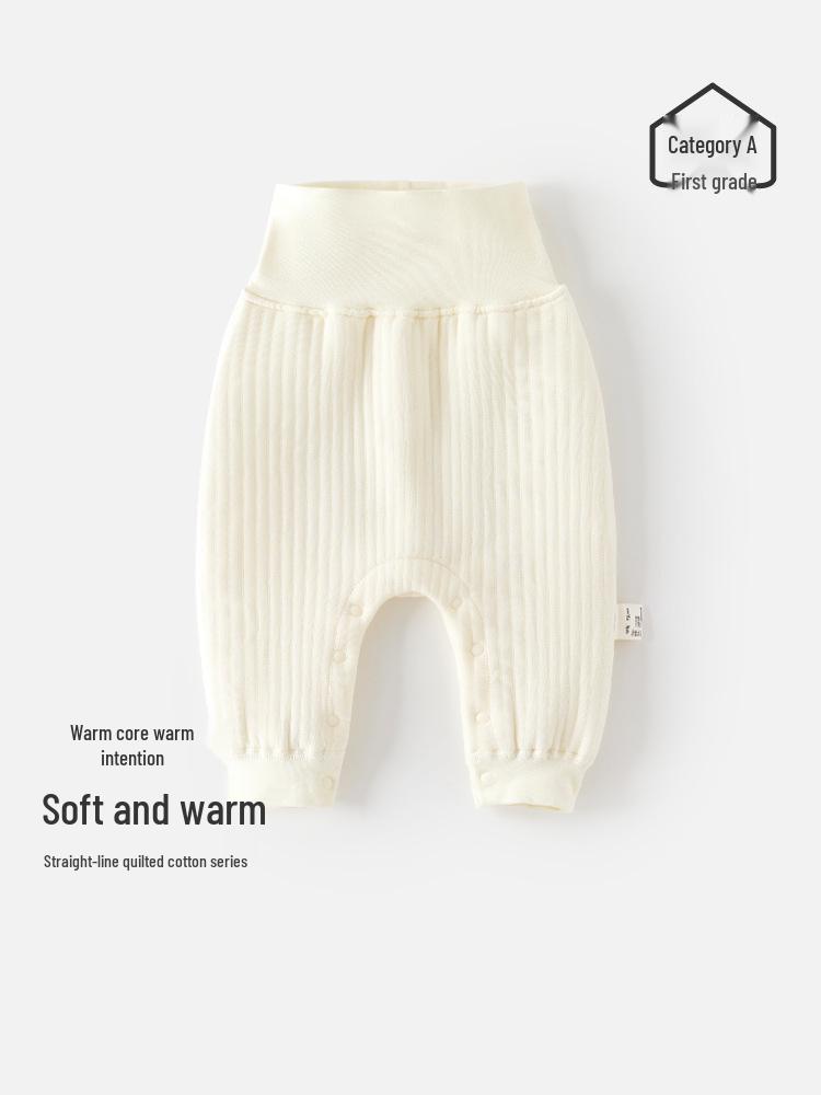 Keep your newborn cozy and comfortable with these quilted high-waist warm pants, perfect for the autumn season. Designed with a thoughtful belly protection feature, these unisex pants provide added warmth and softness, ensuring a gentle touch against your baby's delicate skin. Made from premium cotton material, they offer breathability and durability, making them an essential addition to your little one's wardrobe. Choose these solid color pants for reliable warmth and style during cooler days.