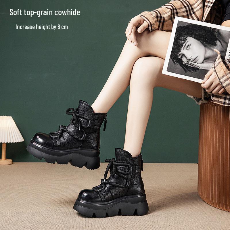 Women's Genuine Leather Platform Martin Boots - 2025 Autumn/Winter Retro Style, Perfect with Skirts for Outdoor Wear.