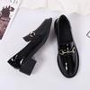 Mocasini de piele cu toc mediu pentru femei: Negru, căptușit cu lână, care adaugă înălțime, pentru primăvara și toamna 2025.