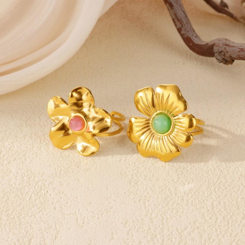 Retro stainless steel ring light luxury high-end gold color-preserving flower accessories wind petal jewelry