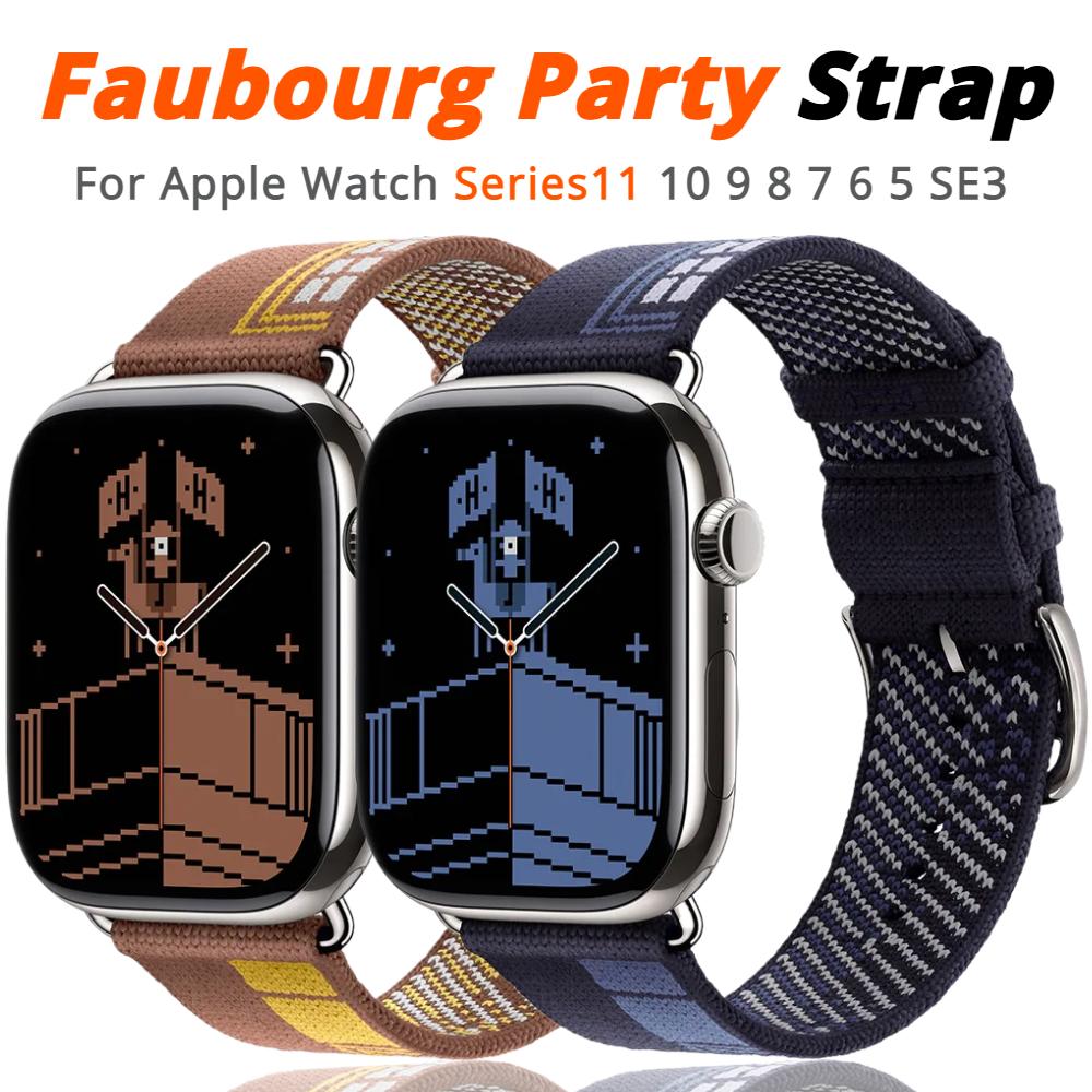 Nylon Woven Strap For Apple Watch Ultra 3 Band 49mm 46mm 45mm 44mm 38mm 40mm 41mm Faubourg Party Bracelet For iWatch Series11 10 9 8 7 6 5 SE3