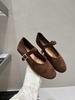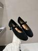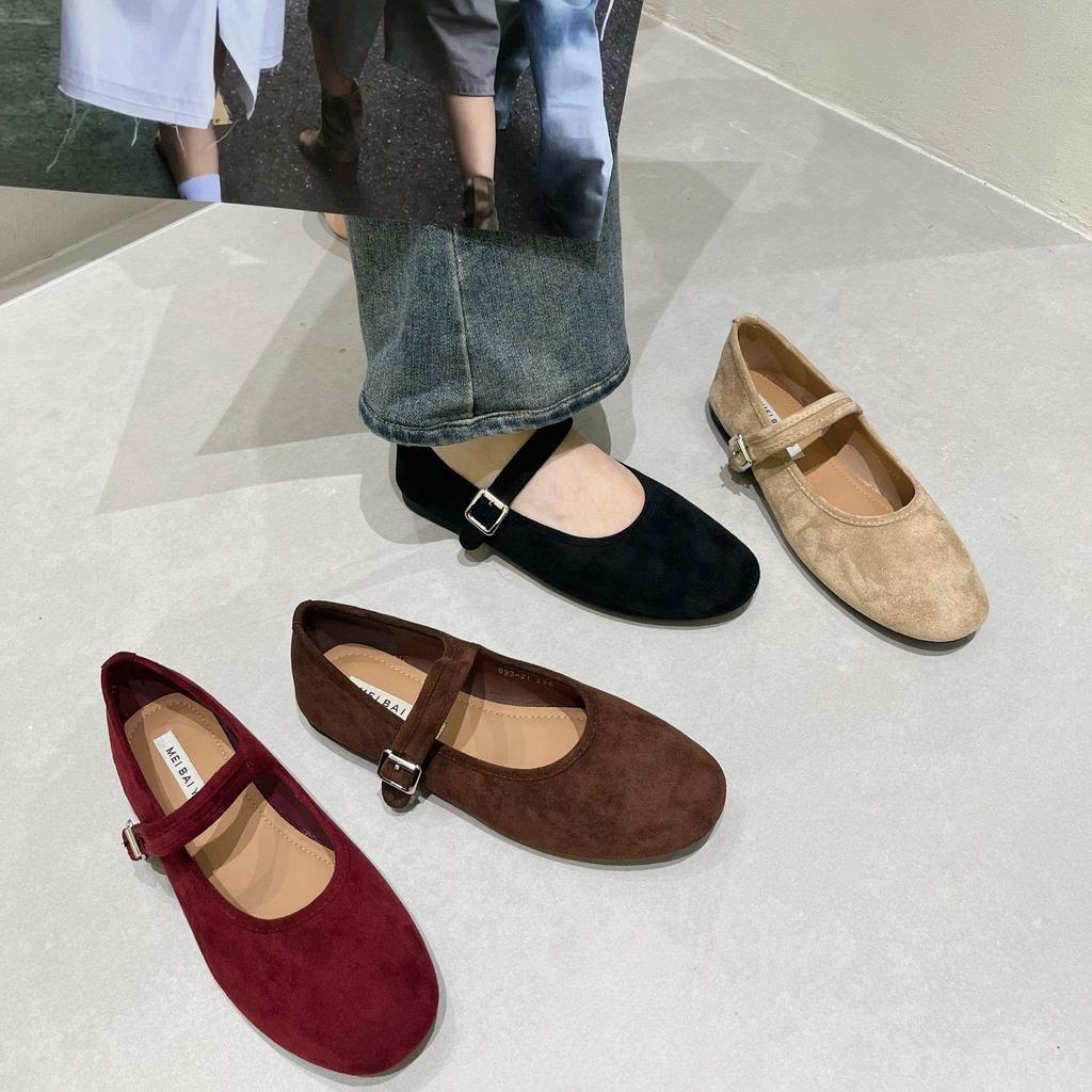 Baletari Mary Jane cu vârf rotund din piele întoarsă în stil coreean pentru femei - Toamna 2025
