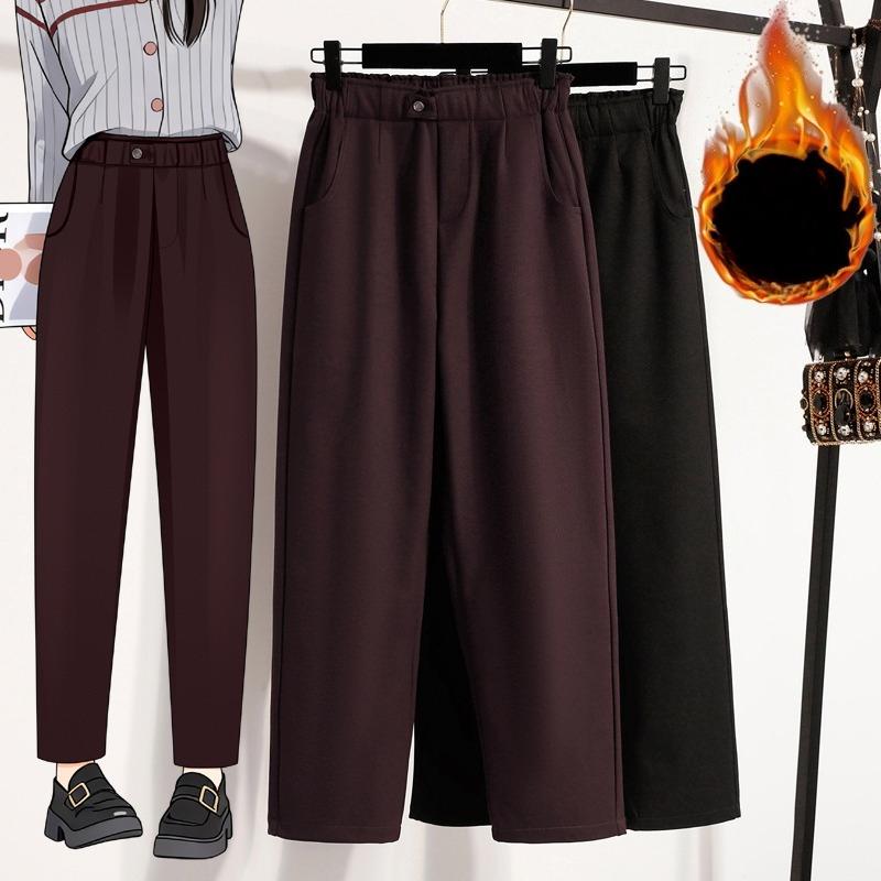 DIMANAF 2025 Autumn Winter Women Plus Size Pants Thick Casual Lady Long Pants Flocking Oversized Loose Bottoms