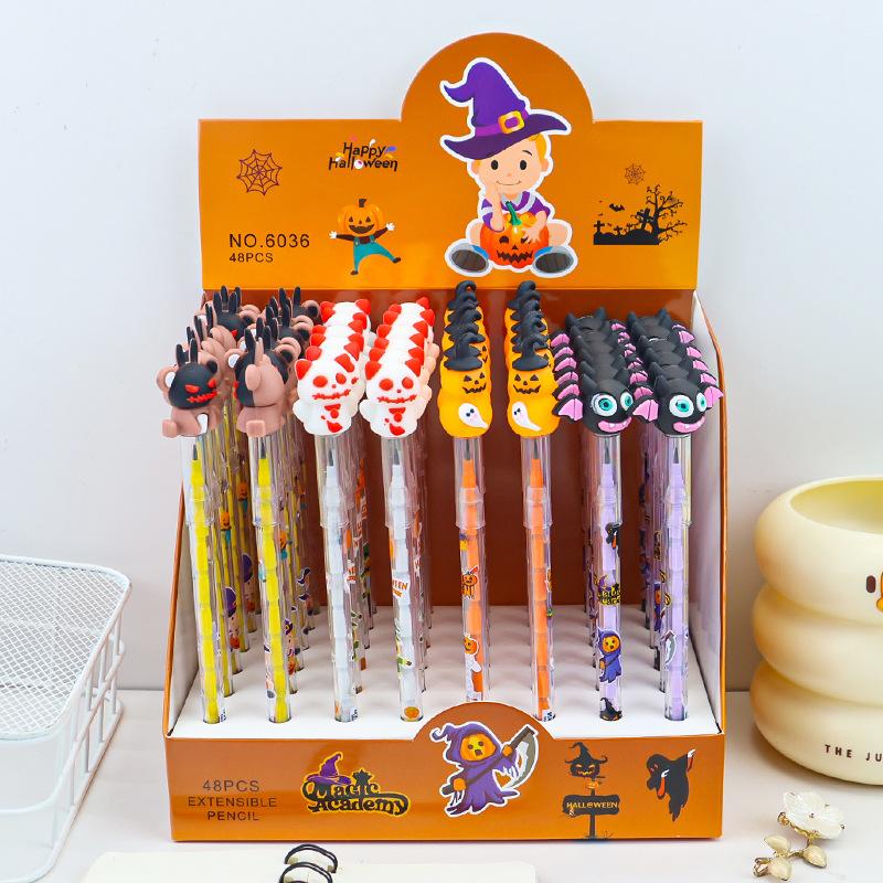 6Pcs Cute Ghost Pumpkin Witch Stackable Block Painting Pencils For Kids Birthday Party Favors Halloween Theme School Rewards