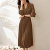 ZANZEA Rochie Casual Femei cu Rever Crestat, Mâneci Lungi Largi, Plisată