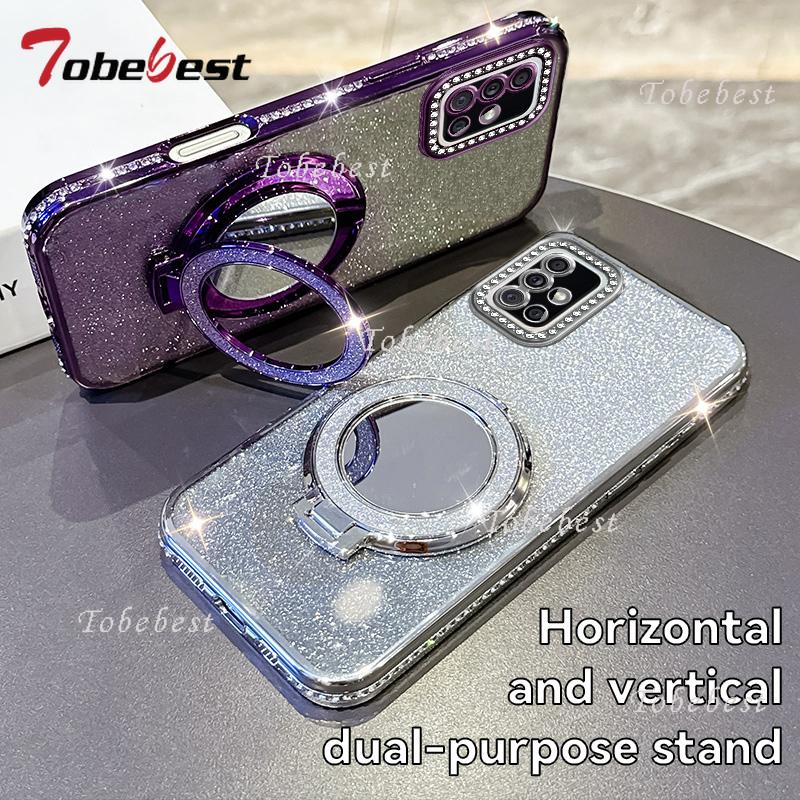 Diamond Glitter Magsafe Mirror Magnetic Holder Case For Samsung Galaxy A21S A31 A51 4G A50 A02S A03S A04 A03 Silicone Cover