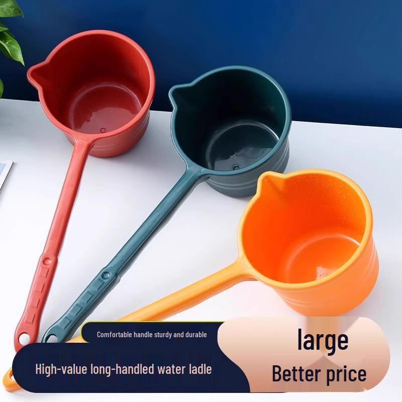 Long Handle Thickened Plastic Water Ladle for Kitchen, Garden Watering, and Baby Bathing