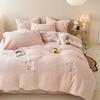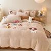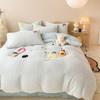 Winter A-class Lamb Plush Cute Rabbit Plush Embroidered Four Piece Set Thick Warm Duvet Cover Double-sided Plush Bedroom Bedding