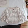 Korean Style Boys' Striped Retro T-shirt - Round Neck, Spring Fashion