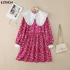 Caracteristici:Rochie tricotată combinată în formă de X cu mâneci lungi, cu guler bebeluș negru cu urechi, cu mâneci lungi și imprimeu floral mic