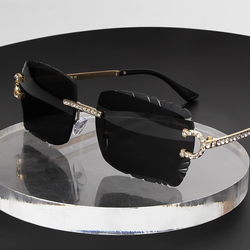 Ochelari de soare pătrați, cu montură fără ramă, tăietură tip piatră prețioasă, la modă, cool, cu lentile degradate, unisex, ochelari de soare, retro, fără ramă, lentile tăiate tip diamant, nuanțe