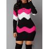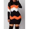 Femei Elegant Patchwork Mânecă Lungă Rochie Caldă Toamnă Iarnă Rochie Pulover Tricotat în Coaste Casual Gât Înalt Pulover Mini Rochii