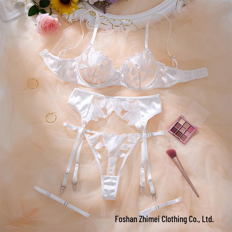Elegant Embroidered Lingerie Set: Sheer Stockings, Non-Slip Garter Belt & T-Back
