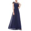 Rochie Maxi de Petrecere pentru Femei, Culoare Solidă, Dantelă Transparentă Patchwork, Mânecă Scurtă
