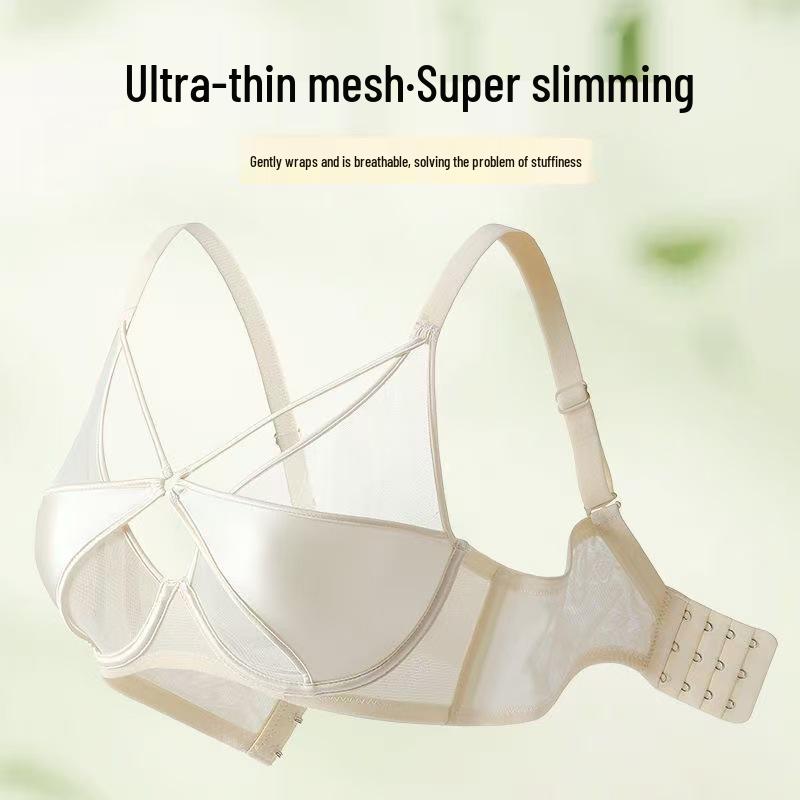 Elegant French Women's Uplift Lingerie: Thin Style, Anti-Sagging Soft Underwire Bra for Large Chest.