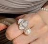 Rose Camellia Pearl Ring Women'S Personality Light Luxury Full Diamond Zir*****Pening Adjustable Ring