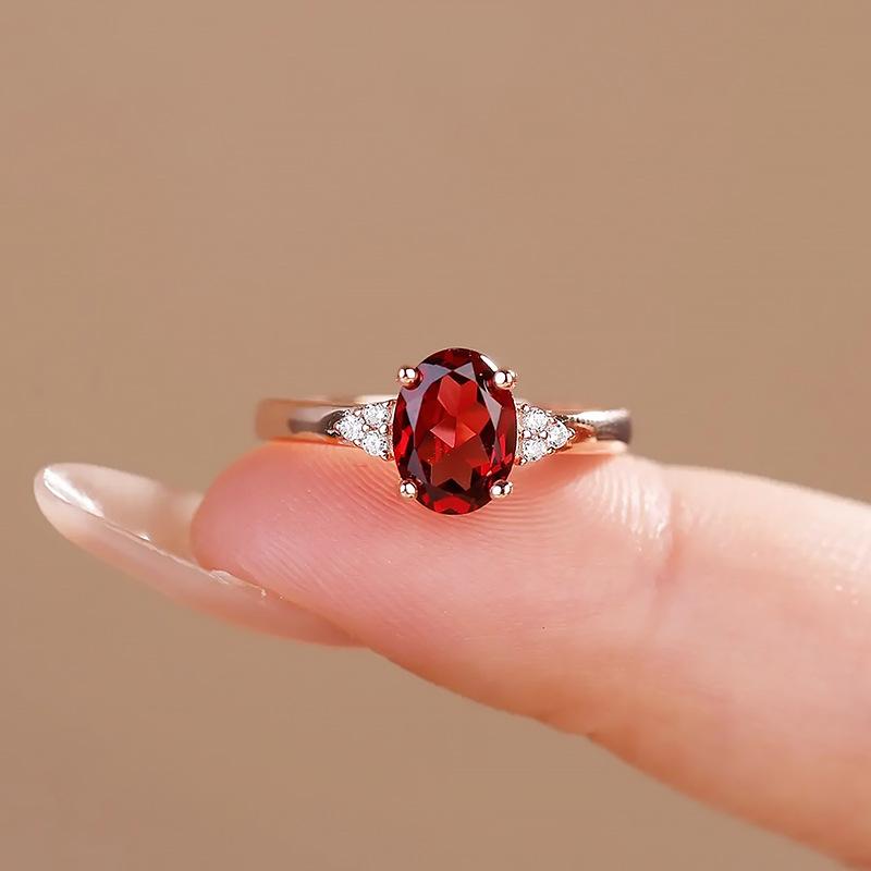 Inel pentru femei placat cu aur roz, cu granat natural imitație, inel viu cu comoară colorată de lux ușor