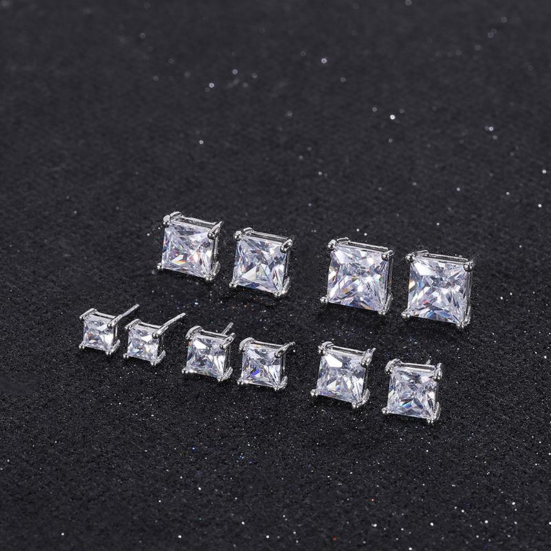 Jewelry Temperament Women'S Earrings Simple Stud Earrings Inlaid With Simulated White Diamond Square Stud Earrings