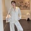 White Moonlight Ice Silk Lace Pajamas: Women's 2025 Long-Sleeved Spring/Autumn Set