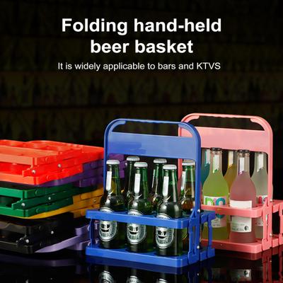 Suport din plastic pentru sticle de vin cu 6 sticle, suport pliabil pentru băuturi cu mâner, coș portabil pentru depozitare vin pentru bar, grătar, picnic