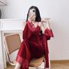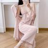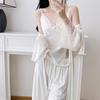 Golden Velvet Women's Camisole, Pants, and Robe Set - Lace Detail, Autumn/Winter Homewear, Suitable for Outdoor Wear.