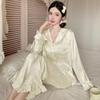Experimentați amestecul perfect de eleganță și confort cu acest set de pijama, care prezintă un top simplu, dar sexy, cu mâneci lungi și pantaloni lungi asortați.. Confecționată din poliester de înaltă calitate, textura jacard cu nervuri adaugă o notă de sofisticare.. Mânecile clopot oferă un aer elegant, în timp ce un detaliu fermecător cu fundă îmbunătățește atractivitatea topului.. Ideal pentru relaxare sau un somn confortabil de noapte, acest set combină designul modern cu confortul clasic.