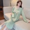Women's Double-Layer Cotton Gauze Nightgown - Soft, Printed, Long-Sleeve, Mid-Length, Suitable for Spring and Autumn Wear
