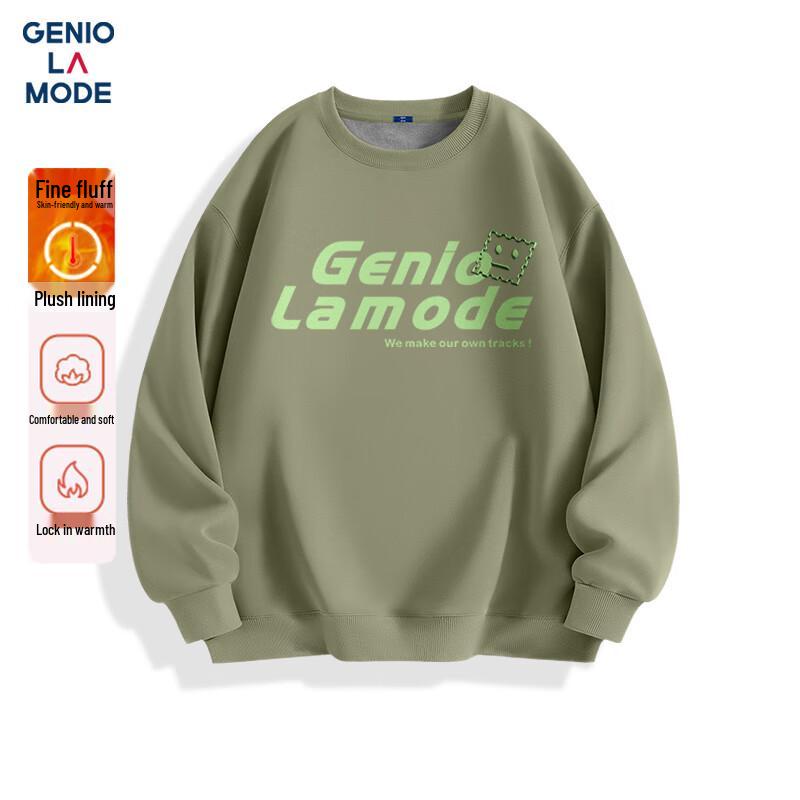 GENIOLAMODE Men's Fleece Lined Graphic Crewneck Sweatshirt