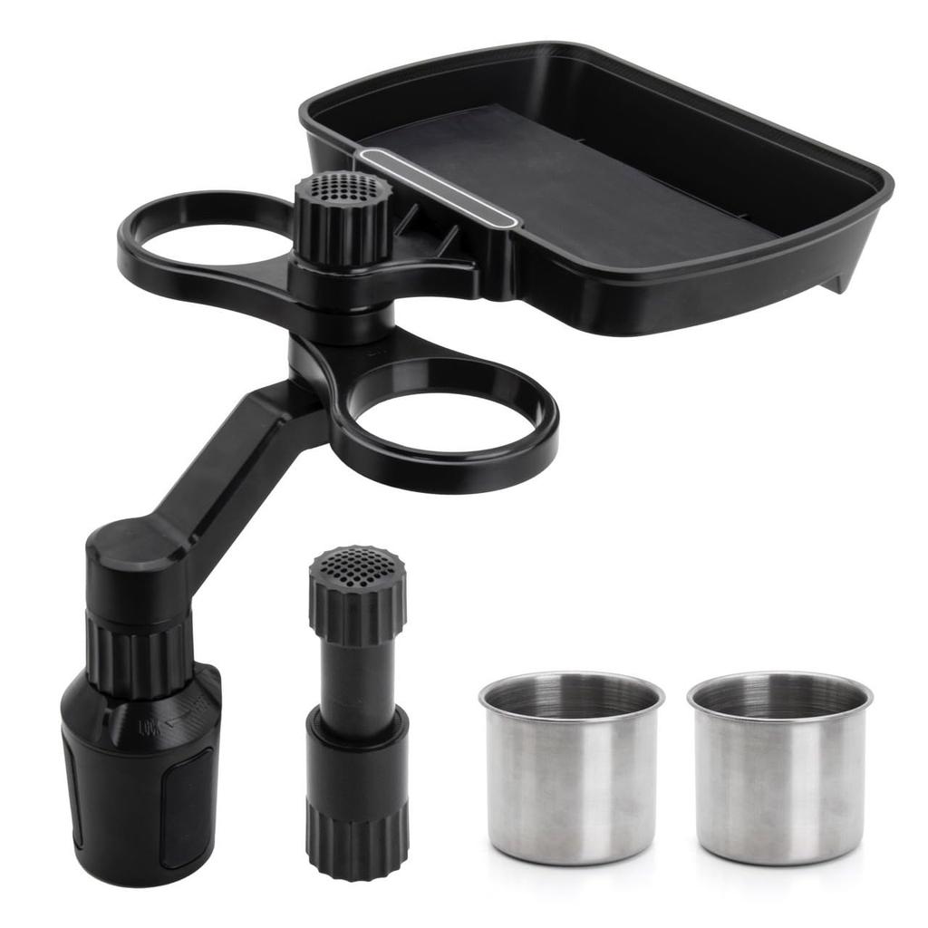 💫【Freely Adjustable Positioning】The two drink holders and tray can rotate 360 degrees, allowing you to freely adjust their positions. You can position the drink holders and tray in the best position for both the driver and passenger. Expand them when needed, and tuck them away neatly when not in use, adjusting them to the optimal position depending on the situation and your preferences.