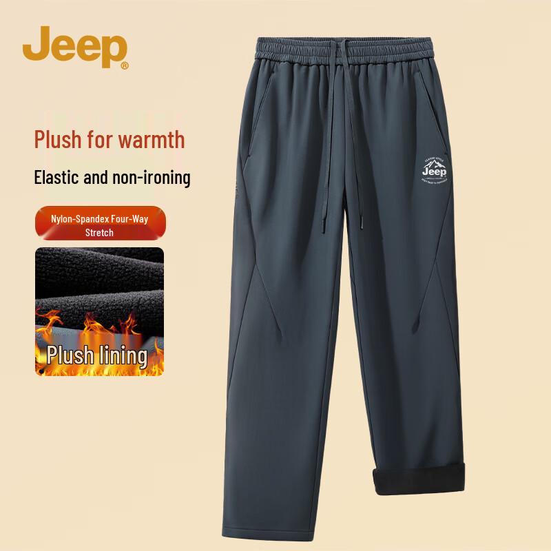 Stay warm and comfortable this winter with JEEP Men's Four-Way Stretch Fleece-Lined Straight Leg Pants. Designed for a loose fit with a natural drawstring waist and tapered cuffs, these versatile pants are wear-resistant and wrinkle-resistant, perfect for everyday casual wear, outdoor activities, or sports. Featuring subtle digital, letter, and geometric prints, they combine trendy and street styles for youth and middle-aged men.