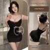 Sleek Lace Patchwork Nightgown with Chest Pads - Sexy Hip-Hugging Suspender Sleep Dress for Women