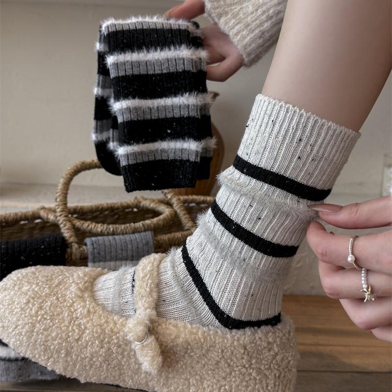 Women's Autumn and Winter Warm Thickened Striped Thick Line Boneless Wool Medium Tube Pile Socks