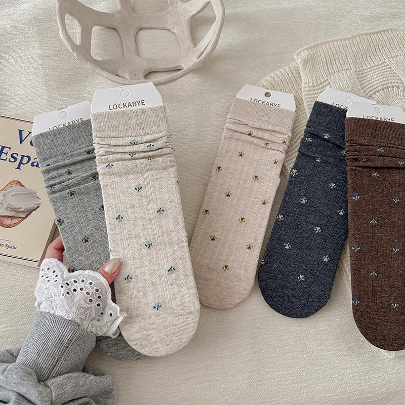 Women's Autumn & Winter Floral Mid-Calf Socks - French Style, Trendy, Versatile, and Retro.