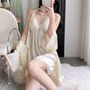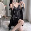 Experimentați confort luxos cu acest set de îmbrăcăminte de noapte casual de înaltă calitate, care include o cămașă de noapte cu mâneci lungi pentru femei și un halat elegant din dantelă.. Fabricat din mătase de gheață premium și materiale de mătase artificială, acest set oferă o senzație netedă și mătăsoasă pe piele.. Mânecile lungi oferă căldură suplimentară, în timp ce buretele de la piept asigură o potrivire subtilă și măgulitoare.. Ideal pentru seri relaxante și nopți odihnitoare, acest duo sofisticat de îmbrăcăminte de noapte combină stilul cu confortul, perfect pentru femeile moderne care caută eleganță în rutina lor de seară.