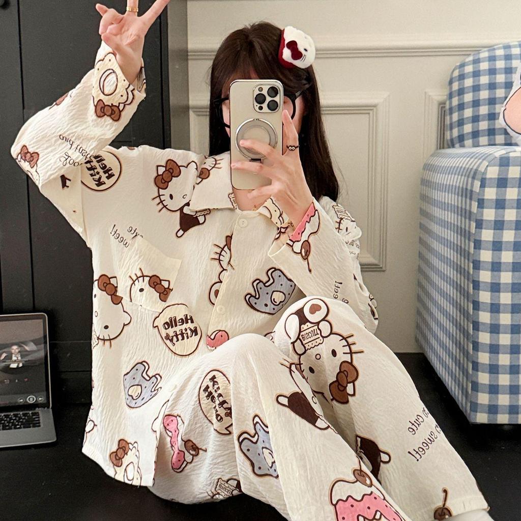 Răsfață-te cu confort și drăgălășenie cu acest set de pijama încântător pentru femei, perfect pentru sezoanele de tranziție primăvara și toamna.. Confecționat din bumbac luxos ca un nor, acest set asigură o senzație moale și confortabilă pe piele.. Cardiganul cu mâneci lungi este asortat cu pantaloni asortați pentru un look armonios, care este atât jucăuș, cât și practic.. Conceput pentru stil și confort, acest set de pijama promite un somn odihnitor de noapte, adăugând în același timp o notă amuzantă colecției tale de îmbrăcăminte de casă.