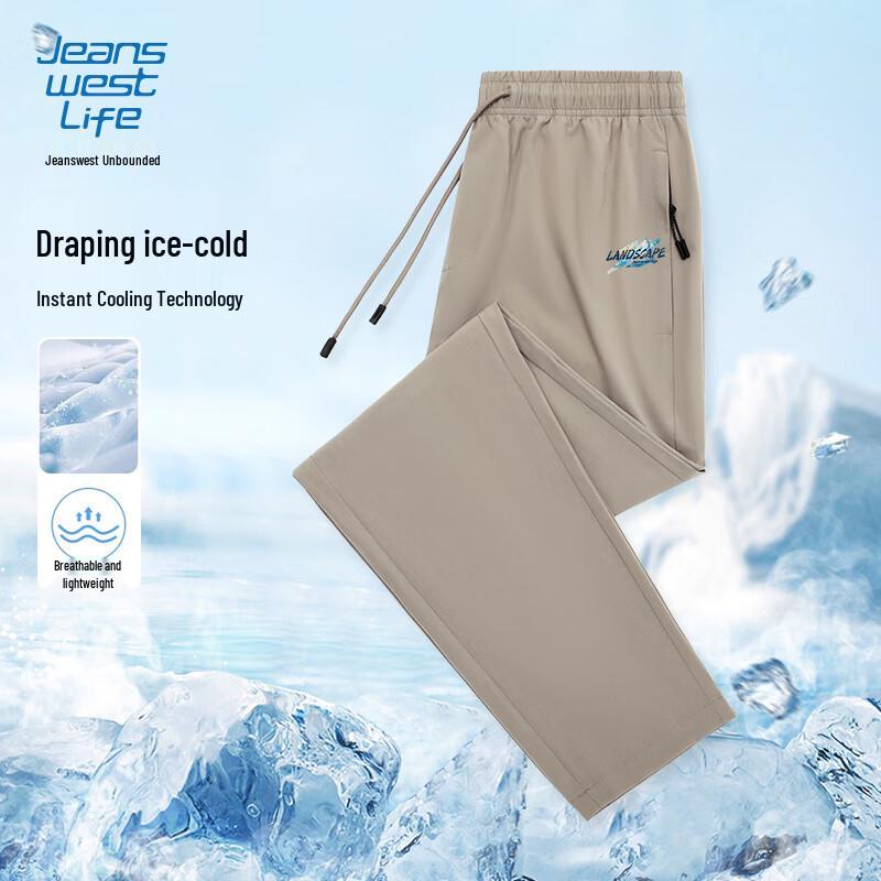 Experience ultimate comfort and style with Jeanswest Men's Ice Silk Quick-Dry Straight Casual Pants. Crafted from a breathable, thin, four-way stretch fabric (88.6% Nylon, 11.4% Spandex), these loose-fit straight-leg pants offer a cooling 'ice silk' sensation perfect for summer. Featuring a quick-dry finish and an elastic natural waist, they are ideal for daily wear, outdoor activities, sports, and casual occasions.