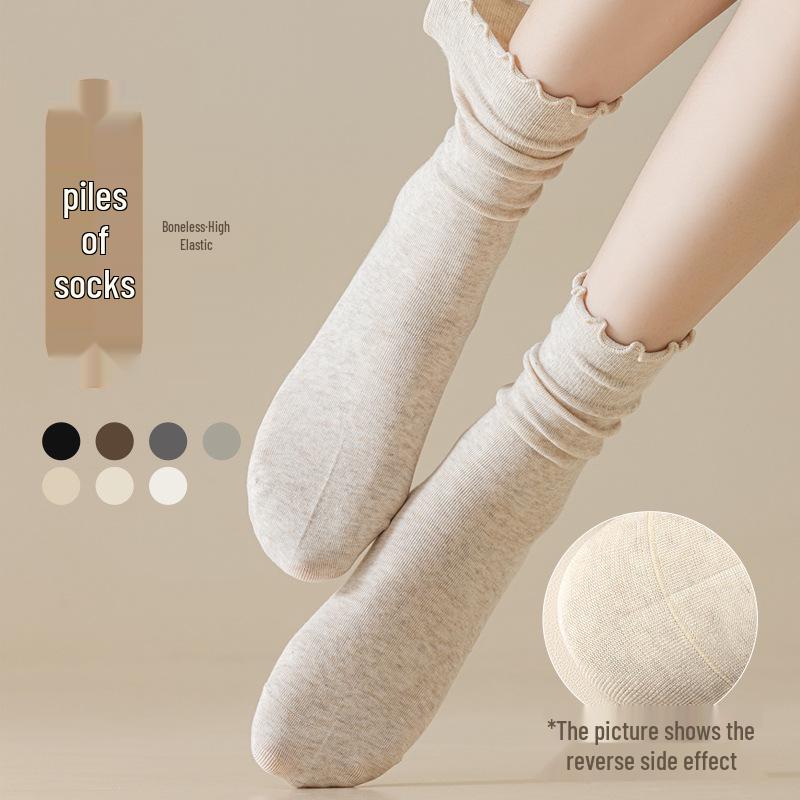 Women's Lace Ruffle Mid-Calf Socks - Spring/Fall Style, Perfect with Birkenstocks, Postpartum-Friendly, Long Socks for Autumn/Winter