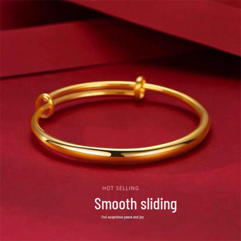 Gold-Plated Women's Smooth Round Belly Bangle Bracelet - Simulated Gold, Wedding High-End Accessory
