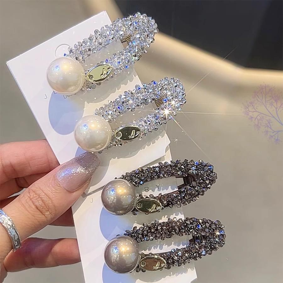 Korean-Style Pearl Duckbill Hair Clip with Rhinestone Fringe