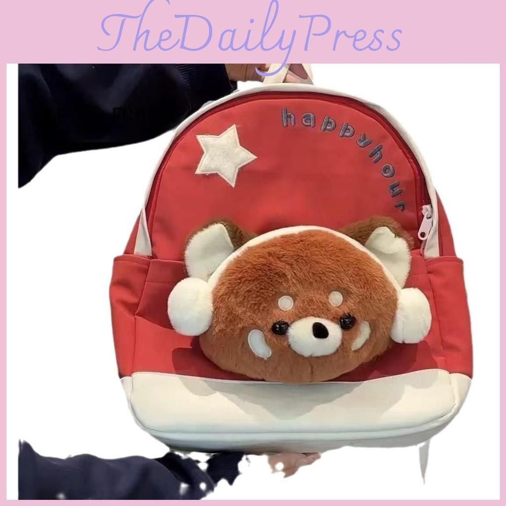 Doll Panda Bear Headband Earphones Star Letter Backpack Zipper Style Design