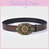 Flower Belt Print Pattern Hollow Metal Buckle Fashion Accessories Clothing