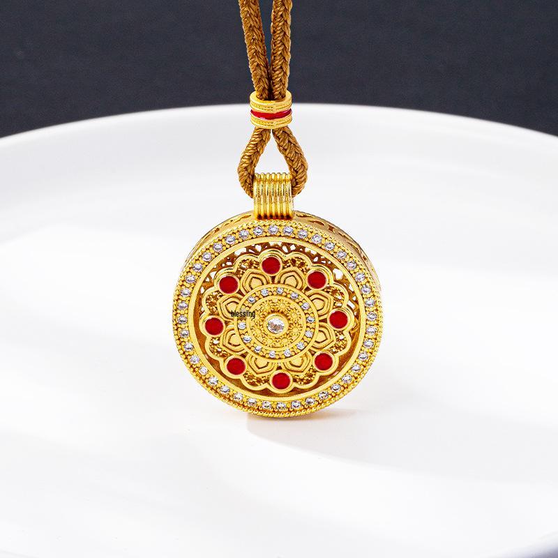 Vintage Vietnam Sand Gold Rotating Tag Pendant with Inlaid Diamond - Non-Fading Long-lasting Jewelry