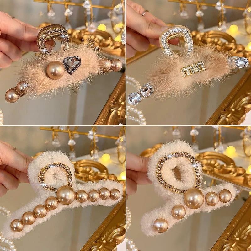 Autumn/Winter 2025 Plush Mink Fur Love Heart Rhinestone Shark Claw Clip for Women