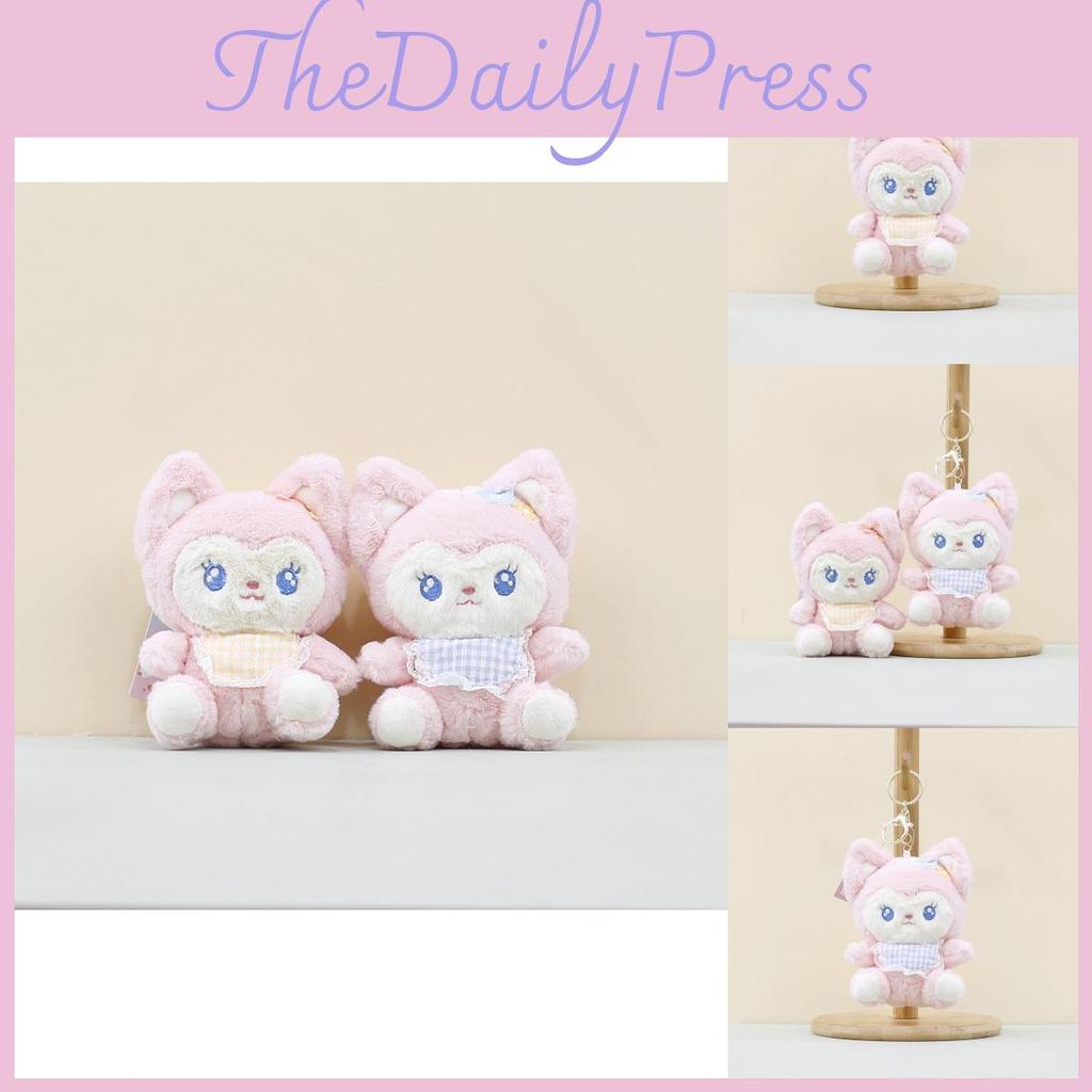Cute Plush Adorable Fox Pendant Toy Keychain Soft Stuffed Doll With Blue Bib Yellow